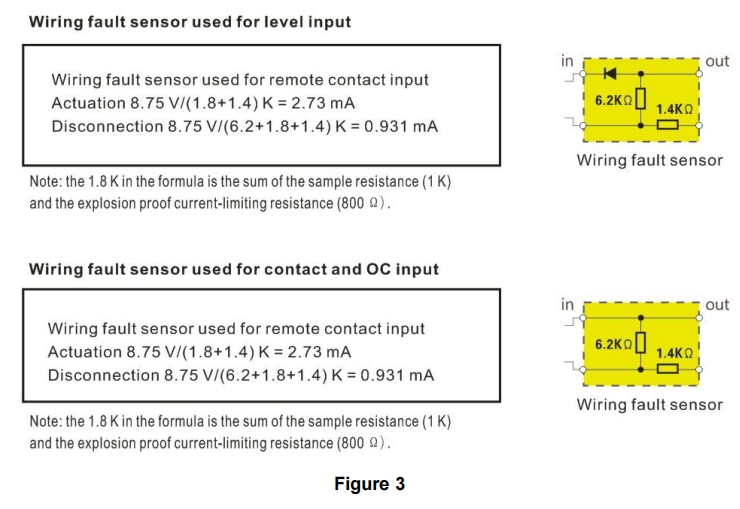 Датчики неисправностей для входных сигналов OC, контакта и уровня используются для различения между
