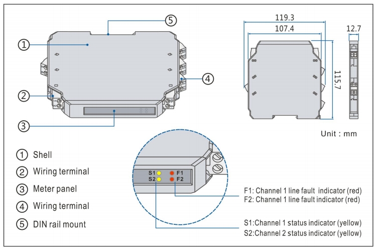 Когда входной сигнал составляет 2,2 ± 0,1 мА < 1,1 ± 0,1 мА, индикатор неисправности (красный) будет гореть.