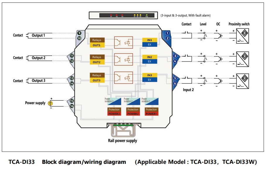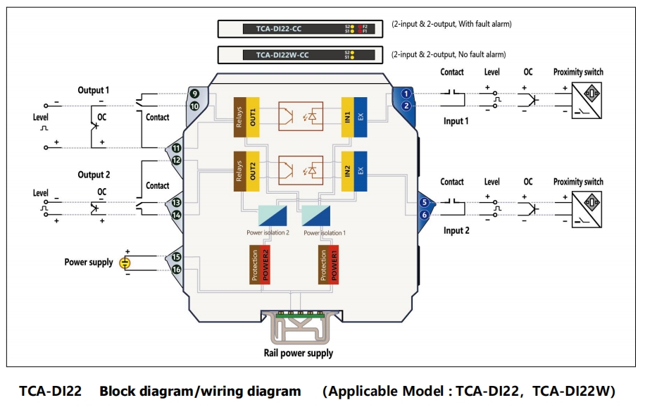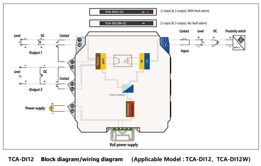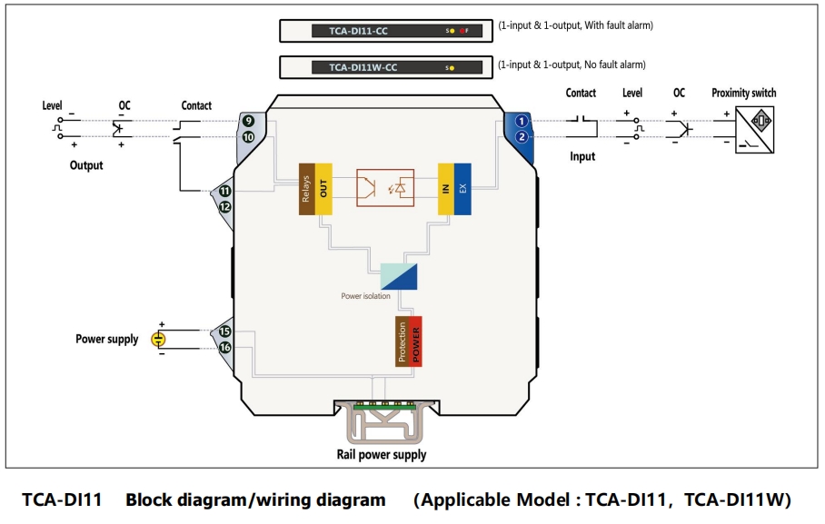 ТКА-ДИ применяется к входу OC, уровня, контактного переключателя или бесконтактного датчика NAMUR. После того как
