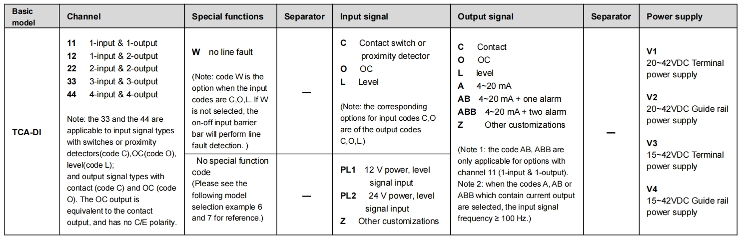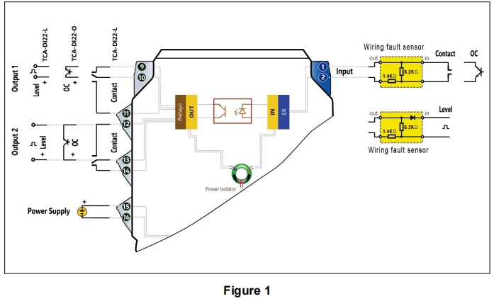 TCA-DI применяется к входу OC, уровня, контактного переключателя или бесконтактного выключателя NAMUR.