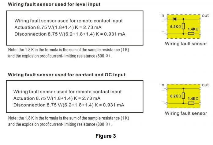 такой же, как при разомкнутой или короткозамкнутой цепи при неисправности соединительного провода. Если соответствующие датчики неисправностей (см. Рисунок 3) не установлены, выход будет поддерживаться на уровне