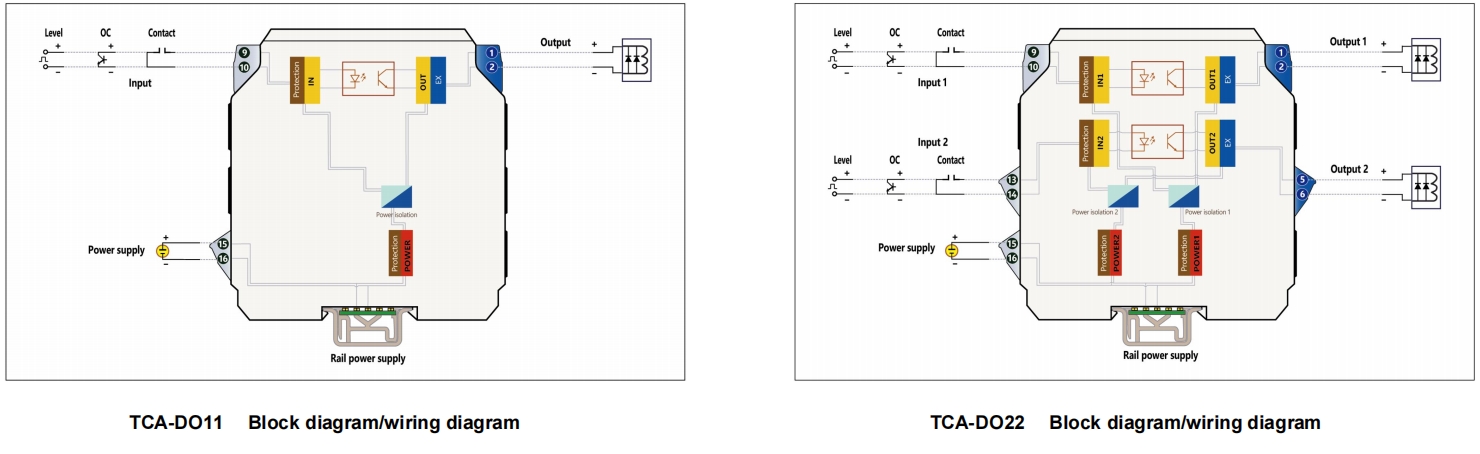 TCA-DO используется для управления источником питания в безопасных зонах с помощью переключателя или сигнала логического уровня и привода аппаратуры, конструктивно защищённой от взрыва, установленной на опасных объектах, таких как электромагнитный клапан и сигнализация.